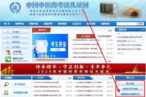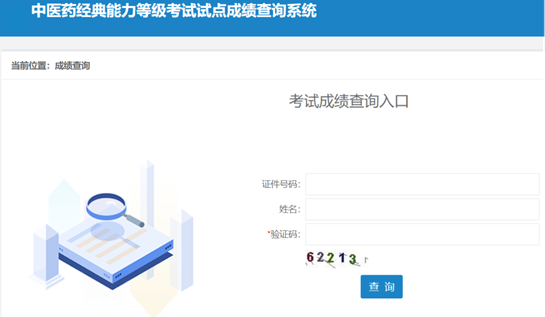登陆中国中医药考试认证网(https://www.tcmtest.org.cn/),找到“考生入口”栏目-“成绩查询”模块,输入“证件号码”、“考生姓名”和“验证码”进行查询。