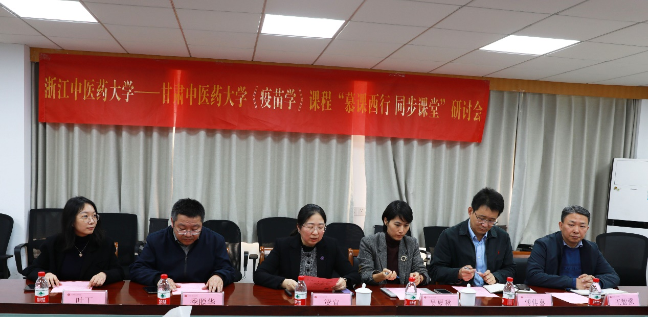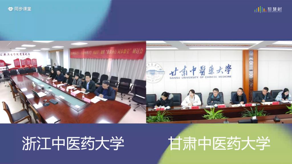 同步课堂开始前,浙江中医药大学·甘肃中医药大学“慕课西行”建设研讨会在线上召开。我校教务处处长梁宜,甘肃中医药大学教务处处长陈彻,甘肃中医药大学教务处副处长谢田鹏,双方有关学院、部门负责人以及智慧树浙江地区负责人参加会议,会议由我校教务处处长梁宜主持。