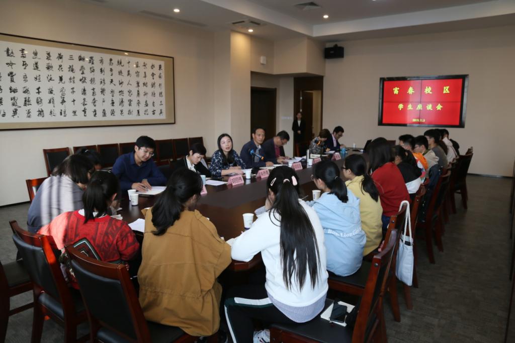 教务处于11月5日下午和11月6日下午分别在富春校区和滨文校区组织召开了本学期学生座谈会。成信法院长、苗志良副院长、朱乔青副处长、胡丽伟副书记、富春校区相关管理人员,以及各学院学生代表和学生教学信息员代表参加了富春校区学生座谈会;教务处楼航芳副处长、各职能科室相关人员,学生教学管理委员会干事、各学院的学生代表和学生教学信息员代表参加滨文校区学生座谈会。会议分别由朱乔青副处长和楼航芳副处长主持。