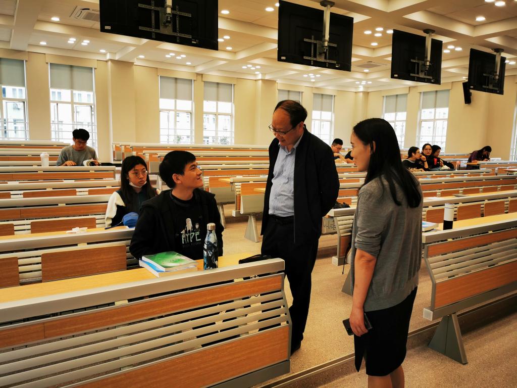 巡查期间,黄书记还与任课教师及学生亲切交谈,对学生寄以问候和鼓励,希望各位老师与同学能尽快在新学期进入教与学状态。交流中,也收到了老师和学生们对新改造后教室的高度评价。