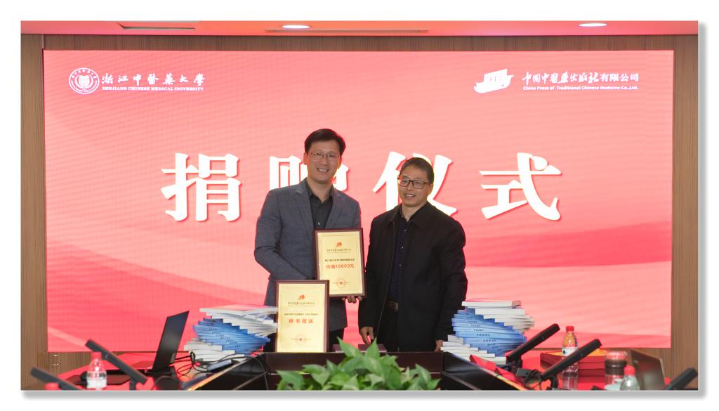 在捐赠仪式上,中国中医药出版社向我校赠送了“十四五”核心示范规划教材样书,并举行了“万名学子教材捐助活动”赠卡仪式。